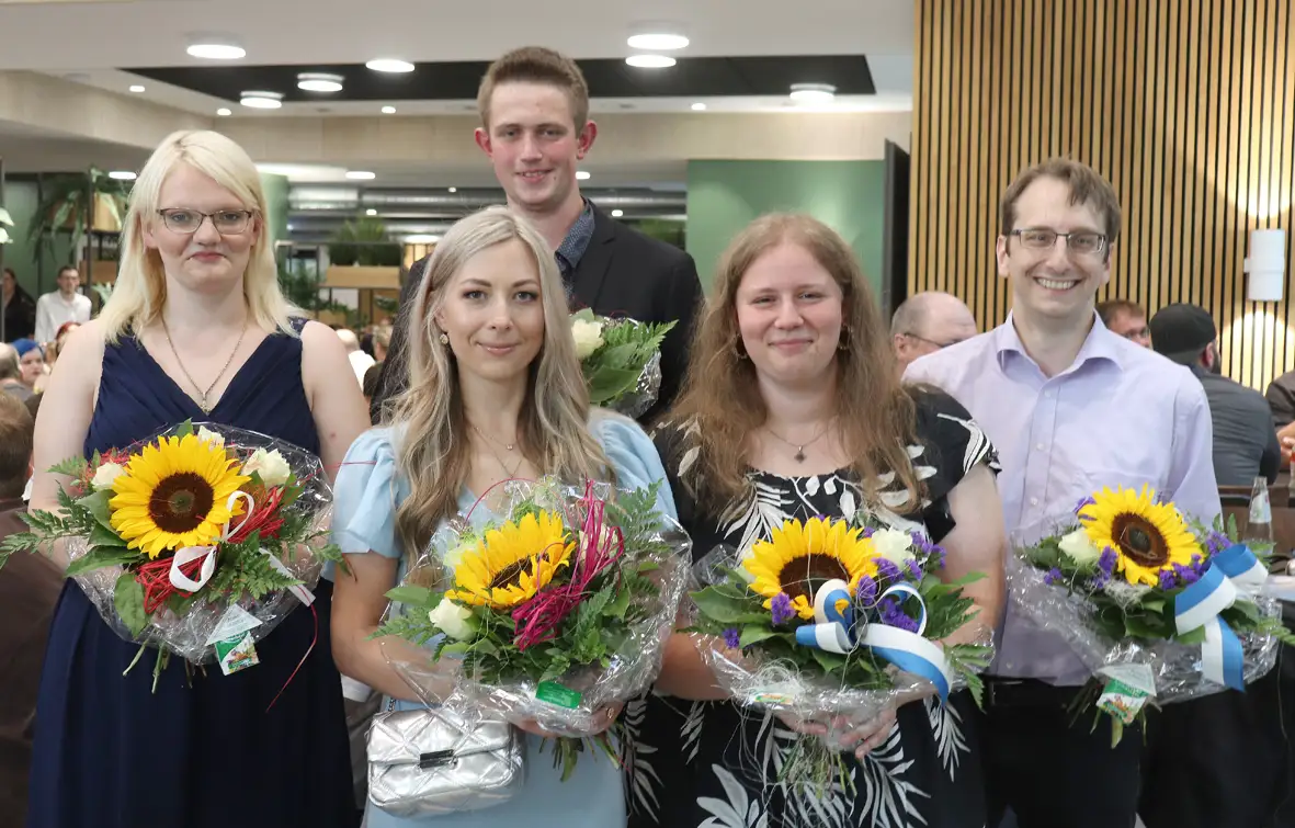 Ein besonderes Präsent gab es für die jeweiligen Innungsbesten: Bäcker Eike Christian Bischoff (Ausbildungsbetrieb Stadtbäckerei Schäfer, Ahnatal), Bäckerei-Fachverkäuferin Sarah Marie Ebbrecht (Bäckerei Amthor, Hofgeismar), Fleischer Alexander Schminke (Kreuders Hofladen und Schlachthof; Schauenburg-Martinhagen), Fleischerei-Fachverkäuferin Marie Kerl (Landfleischerei Spielmann Reinhardshagen-Veckerhagen) und Konditorin Viktoria Fink (Guter Gerlach, Hauneck).