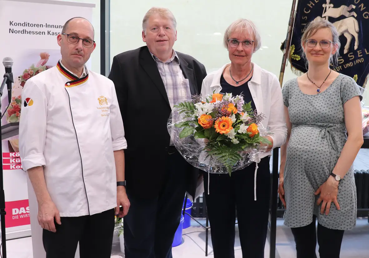 Ehrung für Jutta Bunde-Steltmann (2. v. r.) mit Bernd Riede (li.), Ralf Klug (2. v. li.) (Prüfungsausschussvors. Bäcker) und Silvia Kaestner. (r.)