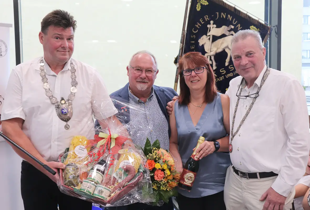 Die Innungen nutzten zudem den feierlichen Rahmen der Gesellenfreisprechungsfeier, um die Fachpraxis-Koordinatoren Nahrungsgewerbe der Elisabeth-Knipping-Schule, Ralf Franke und Jutta Bunde-Steltmann, für deren jahrzehntelangen Einsatz für das Lebensmittelhandwerk in Schule und Prüfungsausschüssen zu ehren. Mit Blumensträußen und Präsenten wurden die beiden in den Ruhestand verabschiedet. Mit einem gemeinsamen Imbiss, Erinnerungsfotos und vielen Gesprächen endete die Veranstaltung.