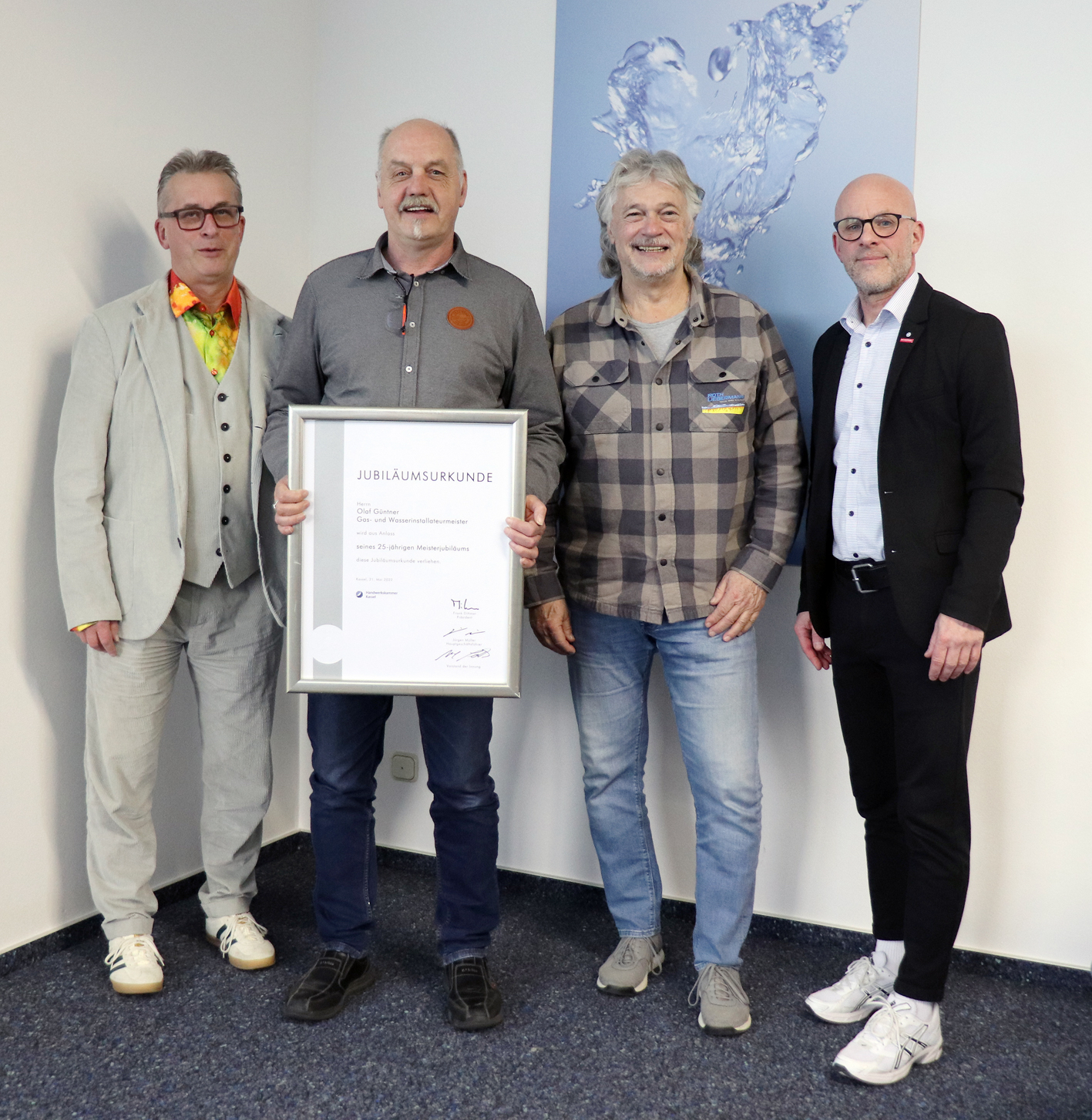 Uwe Loth freute sich, im Rahmen der Versammlung eine Ehrung durchführen zu können: Für sein 25-jähriges Meisterjubiläum erhielt Gas- und Wasserinstallateurmeister Olaf Güntner eine Urkunde und die Glückwünsche der Innungskollegen. Im Anschluss an die Versammlung ließen die Teilnehmer und Teilnehmerinnen den Abend gemeinsam beim Bowling im City-Bowling in Kassel ausklingen.