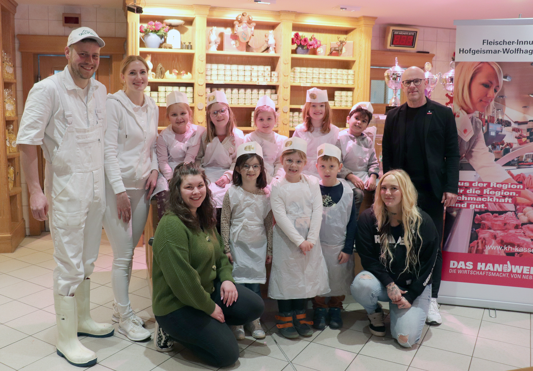 Hofgeismar. Seit vielen Jahren lädt der bundesweite Wettbewerb „Kleine Hände, große Zukunft“ Kita-Gruppen ein, Handwerksbetriebe in ihrer Nachbarschaft zu erkunden und die vielfältigen Berufe des Handwerks kennenzulernen. Die Mädchen und Jungen treffen echte Handwerkerinnen und Handwerker, dürfen ihnen über die Schulter schauen oder sogar selbst Hand anlegen. In Hofgeismar besuchten jetzt Vorschulkinder aus der Dino-Gruppe der städtischen Kindertagesstätte „Am Anger“ die Fleischerei Köhler.
