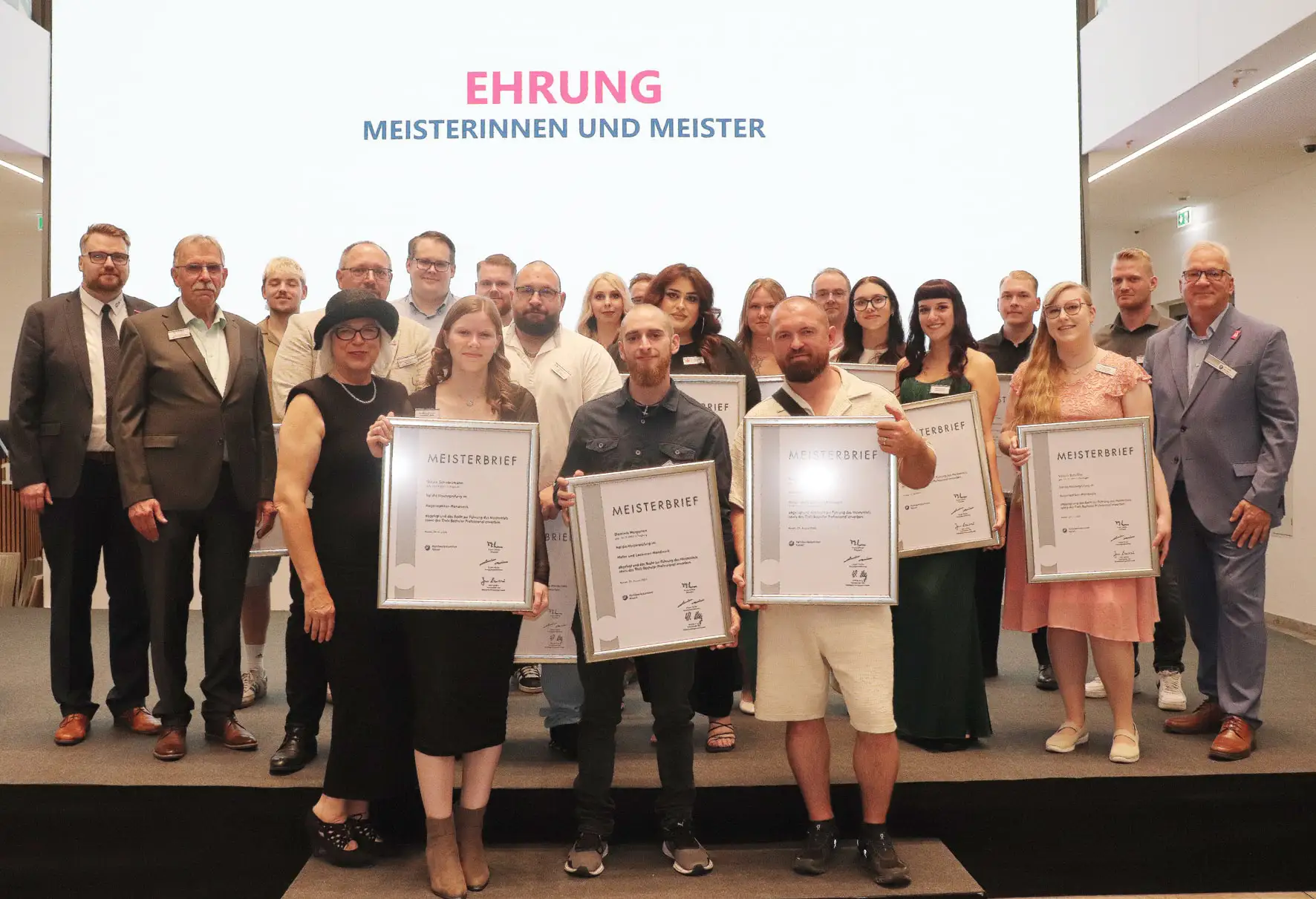 Nach der Ehrung der Innungssieger erfolgte unter dem Applaus des Publikums die Übergabe der Meisterbriefe. Im Anschluss traf man sich zu Gesprächen, einem Umtrunk und leckeren Speisen am