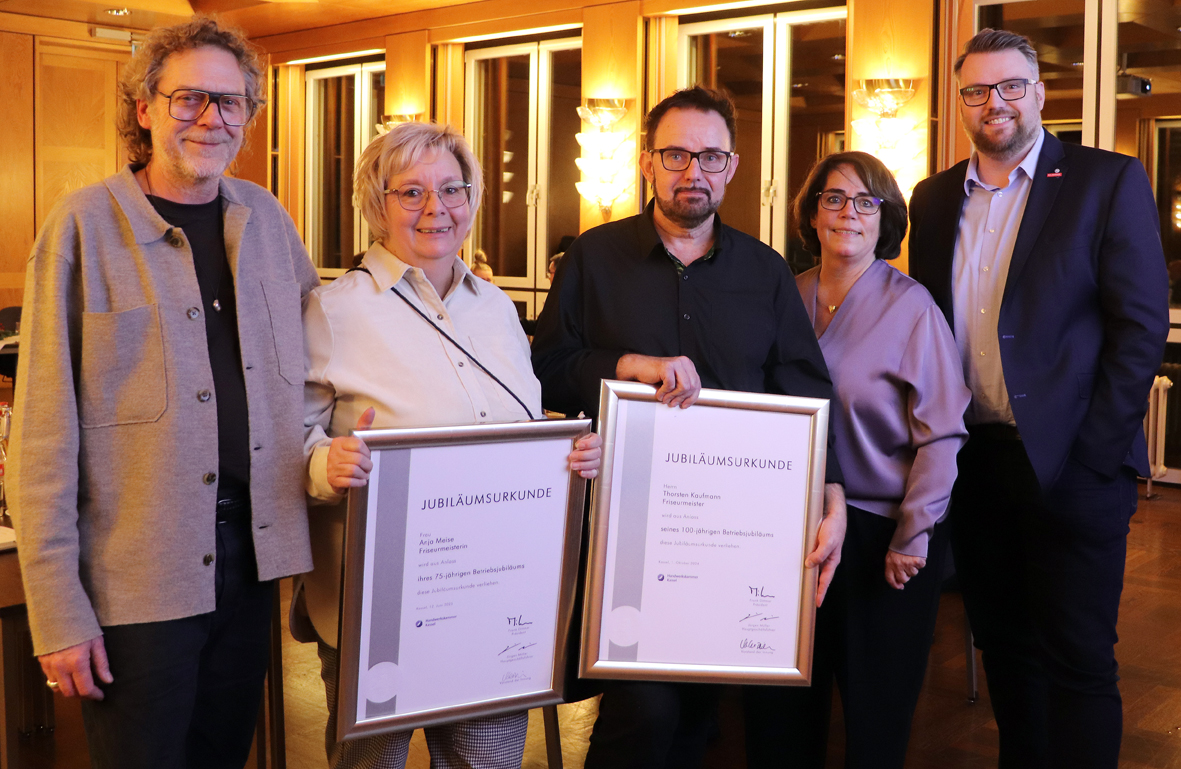Bevor Wahlleiter Marius Jung, Geschäftsführer der Kreishandwerkerschaft Kassel, zu den Wahlen des Vorstandes sowie Ausschussmitgliedern und Delegierten überleitete, stand noch eine besondere Ehrung an: die Versammlung ernannte Alexandra Kaske-Diekmann einstimmig zur Ehrenobermeisterin der Friseur-Innung Kassel. Jubiläumsurkunden gab es auch für Friseurmeister Thorsten Kaufmann zum 100-jährigen Betriebsjubiläum und für Friseurmeisterin Anja Meise zum 75-jährigen Bestehen ihres Betriebes.